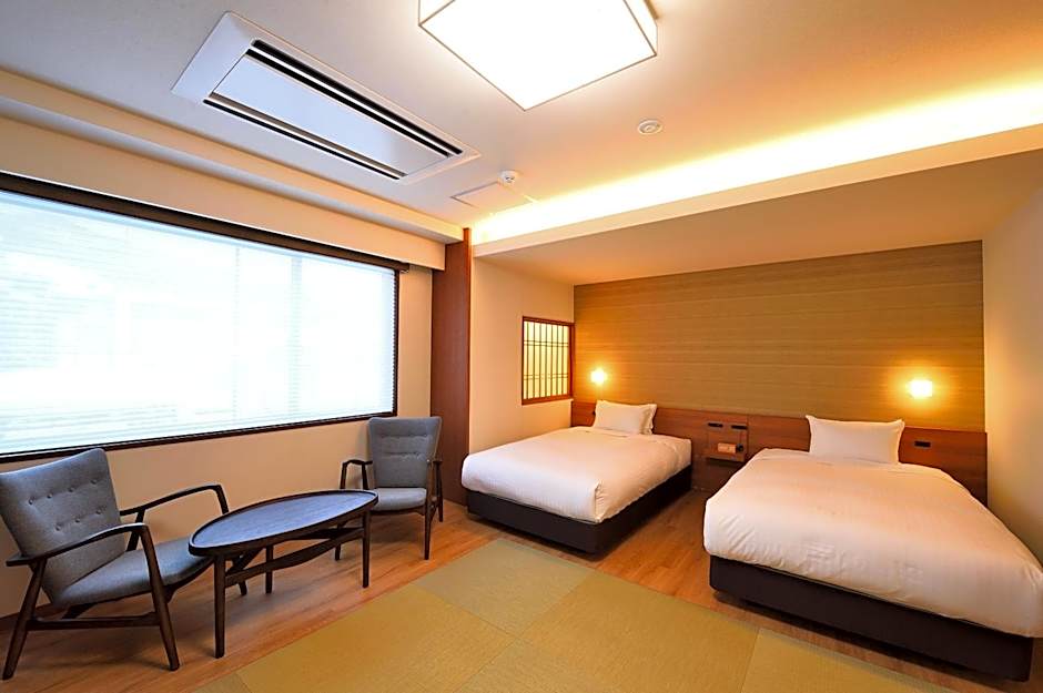 A variety of room types are available, including Premium (Twin) with two double beds and a sofa bed, Superior (Twin) with two twin beds, Triple Room with two twin beds and a sofa bed, Room - 2 Twin (Family) with two twin beds and two futon mats, and Twin Room with Tatami Area (Family) with two twin beds and two futon mats.